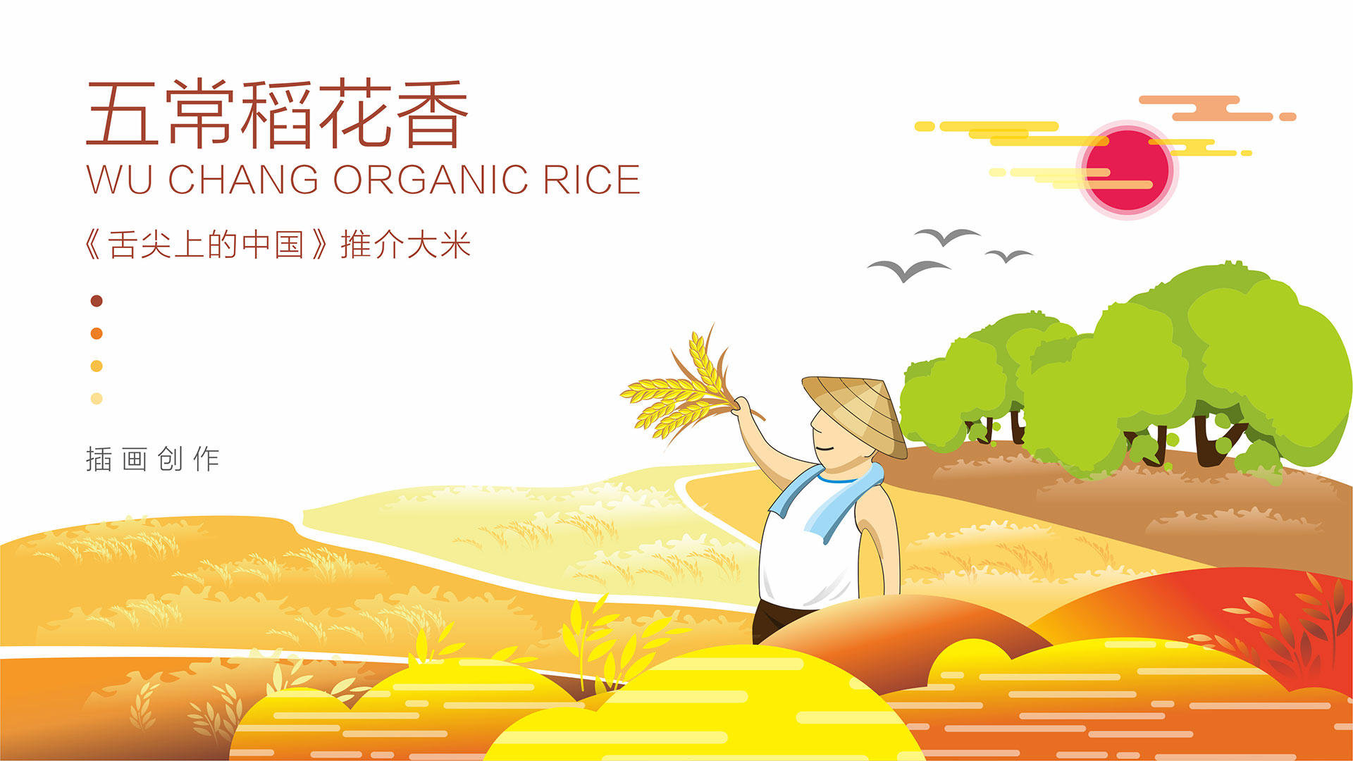 三采用符合目標(biāo)人群喜歡的手繪插畫表達(dá)五常大米生長的場景,體現(xiàn)出生態(tài)、自然和豐收的喜悅。