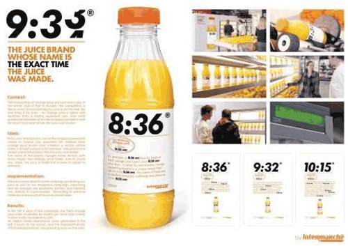 這一點(diǎn)很多人不知道,能做到這一點(diǎn)的包裝設(shè)計(jì)或者設(shè)計(jì)師并不多見,會(huì)說話其實(shí)就是指消費(fèi)者可以很簡單的從產(chǎn)品包裝上獲得他們想要了解的信息。下面這款橙汁的包裝設(shè)計(jì),直接把生產(chǎn)時(shí)間作為主要元素印在包裝上,具體到幾時(shí)幾分,非常簡單粗暴的告訴消費(fèi)者這瓶橙汁到底有多新鮮,這個(gè)設(shè)計(jì)也讓該品牌的橙汁銷量大增,這才是真正的牛創(chuàng)意。