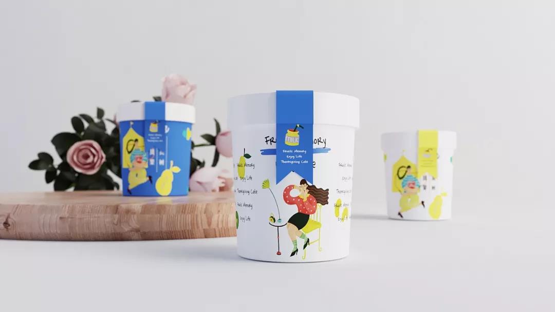 一個酸奶品牌的包裝設計,以輕松年輕的插畫設計