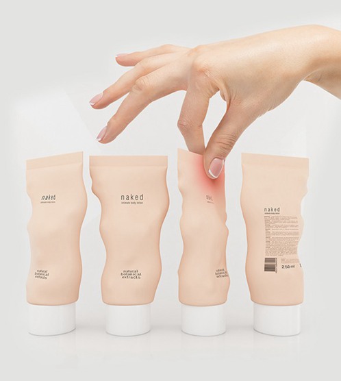 俄羅斯設計師neretin stas為一家化妝品與護膚產品品牌設計了一種交互式的包裝。這些容器清楚地反映出了它們的主要用途,裸露地站在使用者面前,稚嫩的膚色與柔和的曲線像極了人類的身體與肉體。當人們接觸到這些包裝的時候,在發生接觸的位置會發生細微的變化,右側會發光變色,這是因為包裝的表面涂有遇熱變色的涂漆,使其對熱更加敏感,同時也反映了人類的接觸。能夠將感受到的羞怯與愉快清楚地表現出來,展示出了親昵的創意概念。